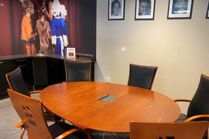 Ta kontaktHimmelrommet er et trivelig møterom for inntil 6 personer, med skjerm og tilkobling til PC.